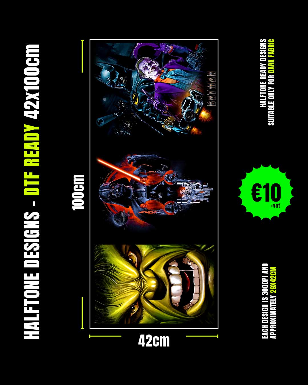 1M DTF film with pre-made halftone designs ready to press on dark fabrics.