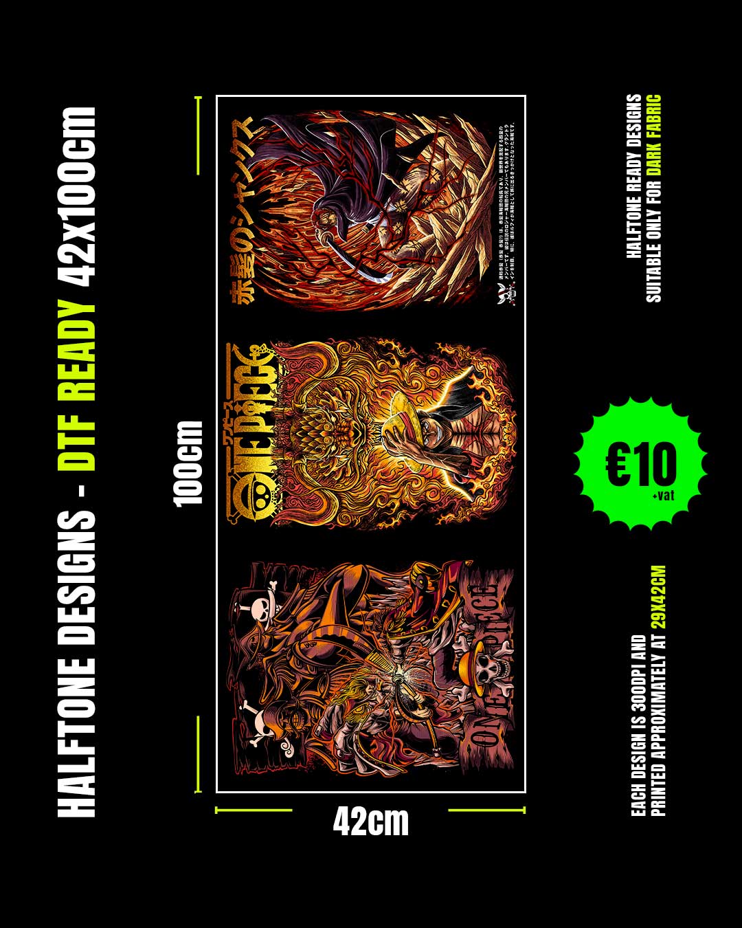 1M DTF film with pre-made halftone designs ready to press on dark fabrics.