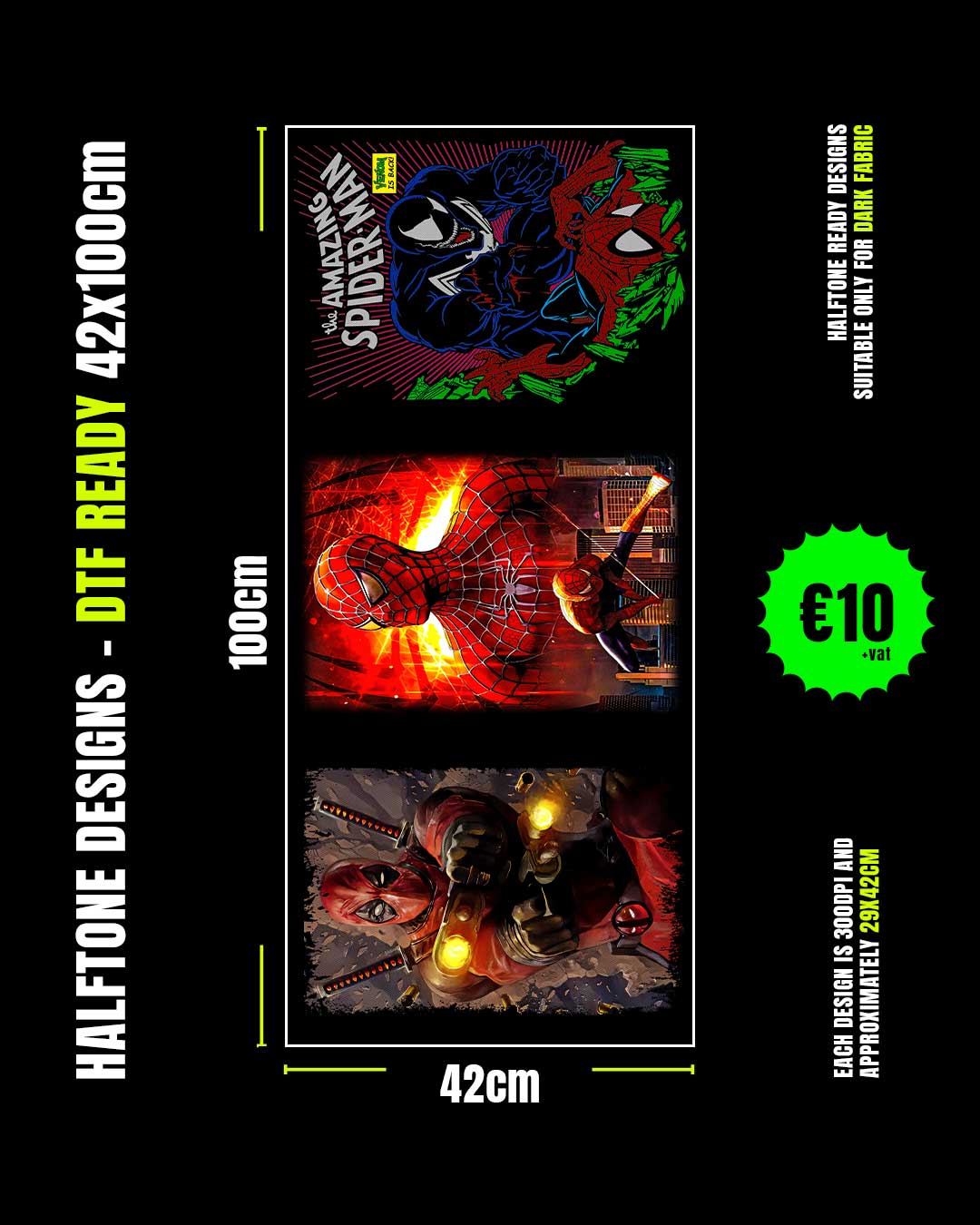 1M DTF film with pre-made halftone designs ready to press on dark fabrics.