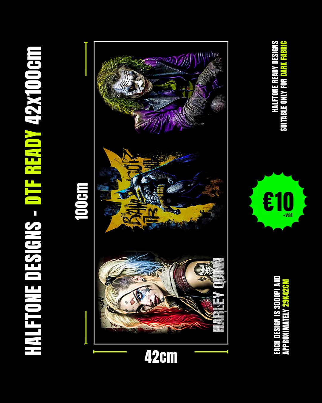 1M DTF film with pre-made halftone designs ready to press on dark fabrics.